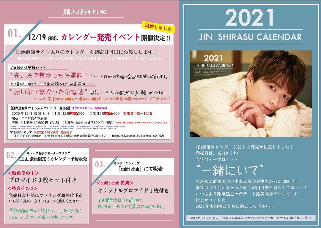 「白洲迅カレンダー2021」の発売が決定しました!